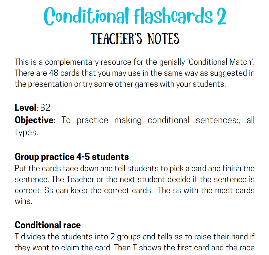 Complete conditional sentences to practice grammar and creativity. Part 2 with more examples and creativity. Includes engaging prompts for pair work.
