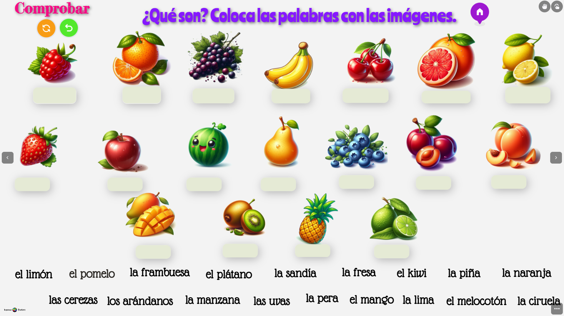 * vocabulario de frutas y verduras y muebles y habitaciones