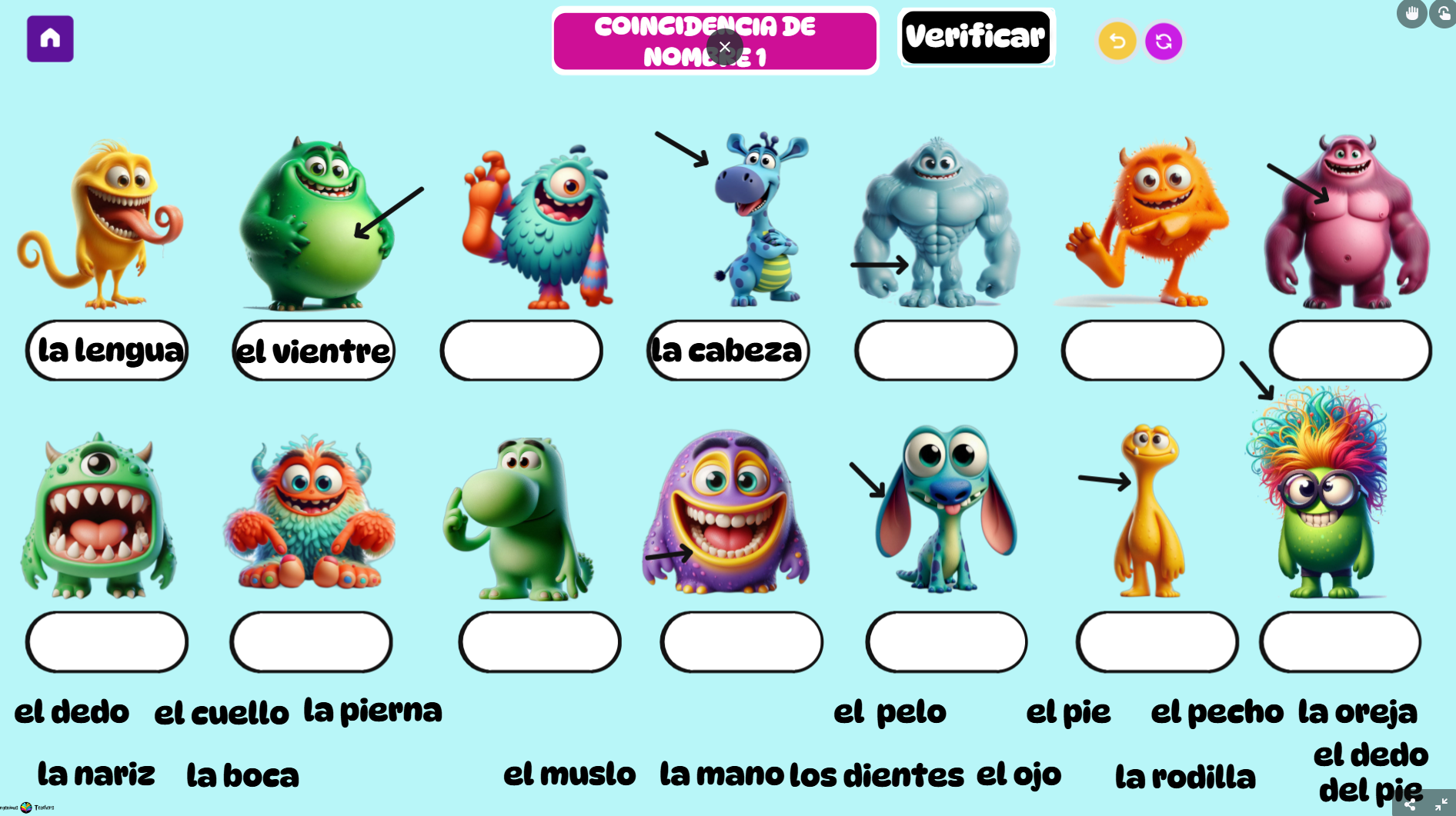 Refuerza el vocabulario de las partes del cuerpo mediante juegos interactivos y actividades prácticas. Descubre distintos juegos de reconocimiento, así como actividades para trabajar la ortografía.