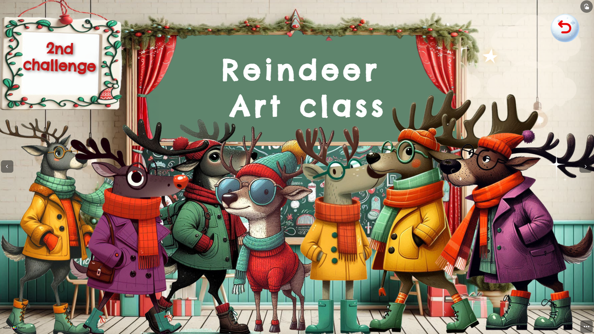 Reindeer Art Class – Listen and identify winter clothing using Present Continuous