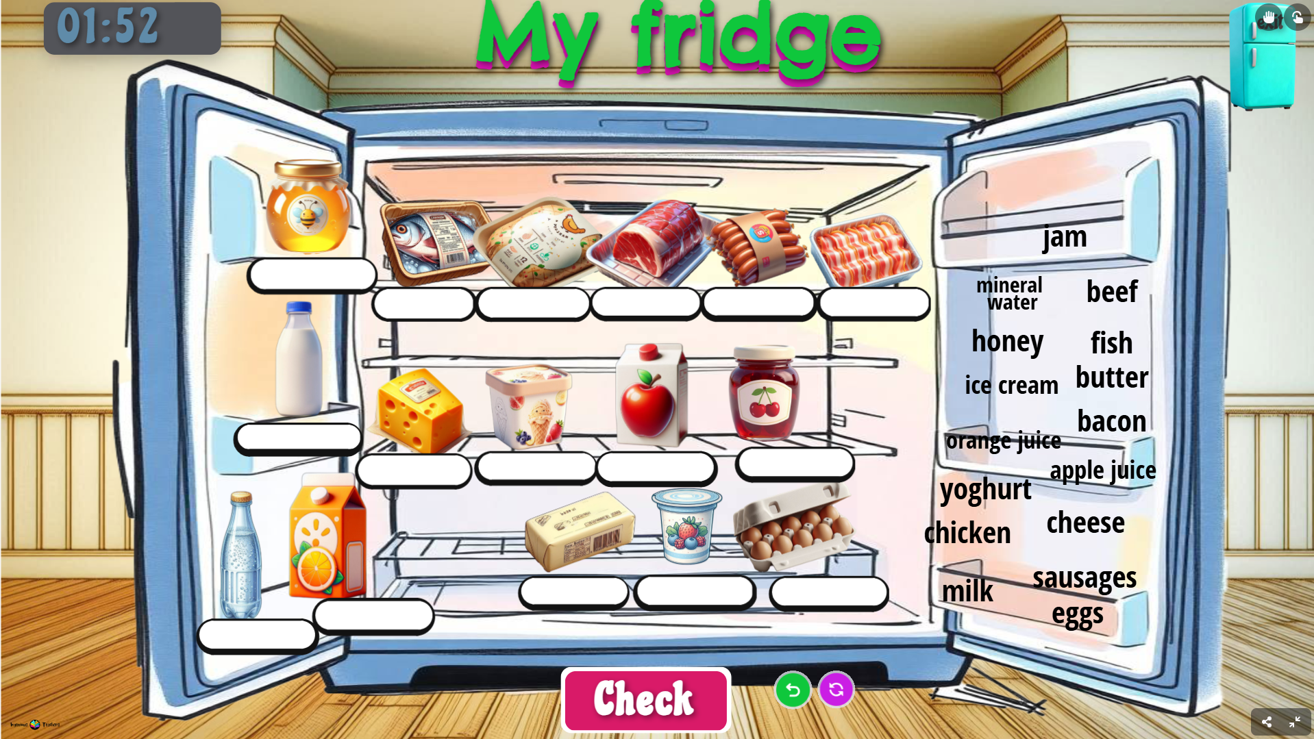 Learners explore food items in a fridge and pantry using a clear progression of tasks: from image recognition and listening practice to matching, spelling checks, reading, and guided speaking. You get all-skill activities for Food vocabulary.